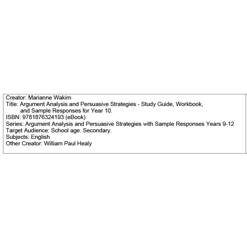 About the Author: Marianne Wakim BA(Hons), DipEd (Sec), MEd is a leading VCE English teacher, previous head of English and head of Humanities, Antonine College. Marianne is a passionate and experienced teacher who has over 15 years extensive experience in preparing students for the VCE English exam. Dedicated to using worked samples to scaffold students' learning and support their skill acquisition, Marianne's pedagogy has focused on presenting worked samples that demonstrate the steps required to complete analytical writing tasks.