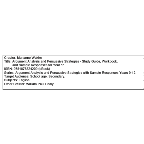A higher level guide, building on the Year 9 and Year 10 workbooks, to analysing arguments and persuasive strategies through a series of short texts accompanied by question sheets and activity tasks and sample responses that aid students in developing their understanding of how written language is used to persuade others to share the points of views presented.